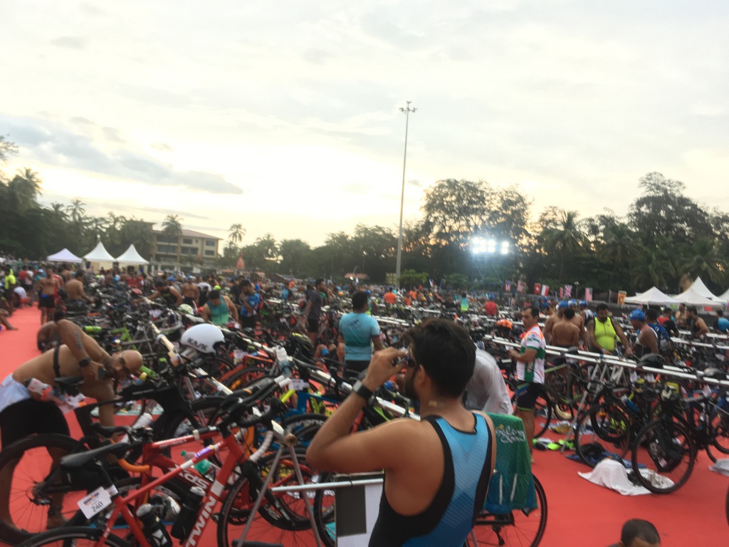 After reaching the race venue, I filled air in the bike, fixed water bottles, mounted Garmin Edge and laid down stuff for two transitions T1 and T2.