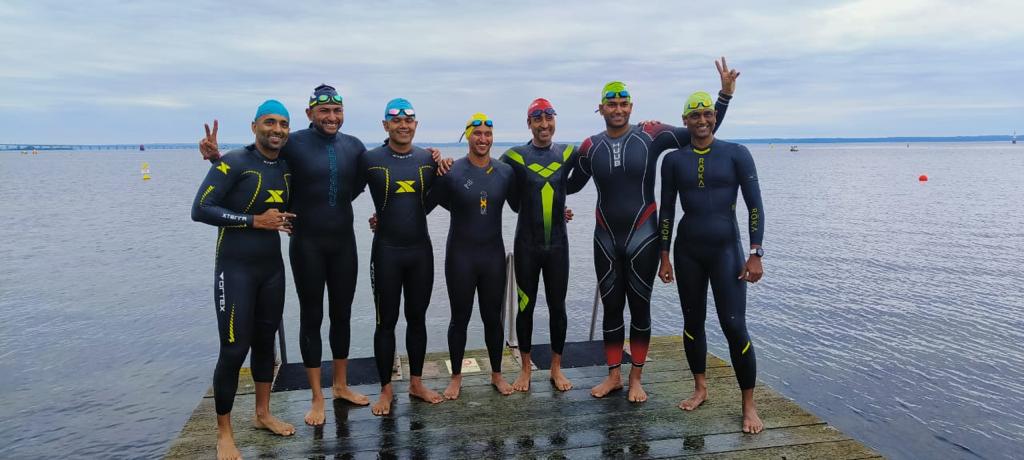 Later in the day, along with Niket, Nitendra, Sohil Parekh, and Hitesh Patel, we headed out to the swim start area. This time, the water felt less cold, and it took only a couple of minutes to find our rhythm. It was a reassuring feeling. We decided to wrap up the day without exerting ourselves any further, preserving our energy for the upcoming race.
