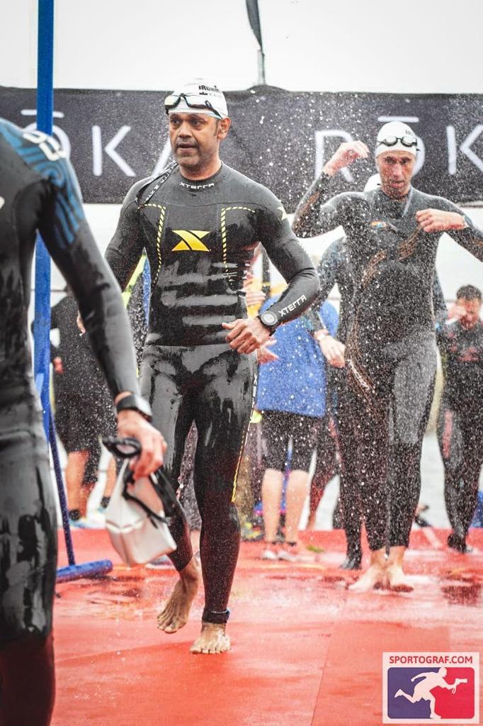 And then just like that it started. The first 500 meters were a whirlwind of chaos – jostling, dunking, kicking, and pushing – everything I had expected. After the first turn buoy, the crowd thinned out, but the water became choppy, creating challenging conditions for the next 2 kilometres. Amongst us athletes, thousands of harmless but tingly jellyfish thronged, making sighting, course correction, and maintaining a straight course a real struggle. There were also sudden waves of cold currents in certain parts of the swim, adding an element of fear.